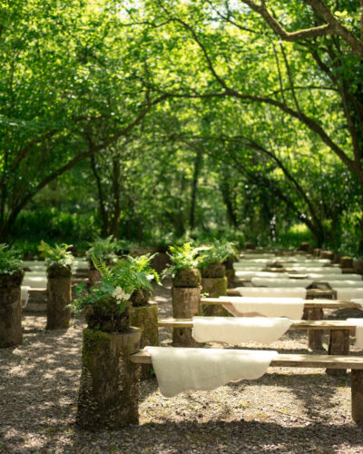 The money from the weddings keeps the woodland thriving, providing a natural habitat for a huge variety of wildlife, some of which is completely dependent on ash. When trees need to be chopped down, the wood is used to supply heating and hot water to Lindsay, Charlie and Amelie’s home as well as the Nissen Hut. Any surplus wood is used to create beautiful, natural features in the Woods at Oakley, such as the Hazel Bower benches and natural tables in the Bluebell Glade.