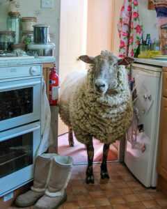 In 2010, Lindsay and Charlie moved onto the site of what was to become their new home. They lived in a caravan on site whilst Charlie got on with building their house. This was fine in summer but in winter it was freezing. Toby, their sheep, came in to get warm and found some Ugg boots for his cold feet. He later became famous as the picture of him below was printed in the children’s edition of National Geographic!