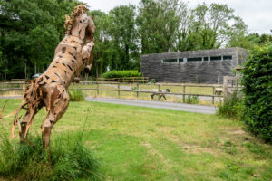 After their house was built, Lindsay and Charlie began renovating the site, beginning with ‘The Cube’, a converted WW2 MT garage that is now a modern art space. They then moved on to the riding school, stables and yard, which has become a sanctuary for Ernie, Mango, Kevin and Marcel, some of the many rescue animals that have made The Woods at Oakley their home (read more about our Woods at Oakley animals here).