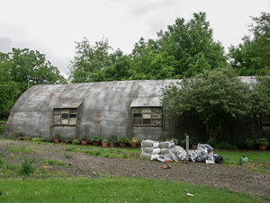- Entrance to RAF Oakley Farm with the original gate posts. The hut on the left was the guard room. It is believed that there could have been as many as 80 Nissen Huts on the site at its peak!